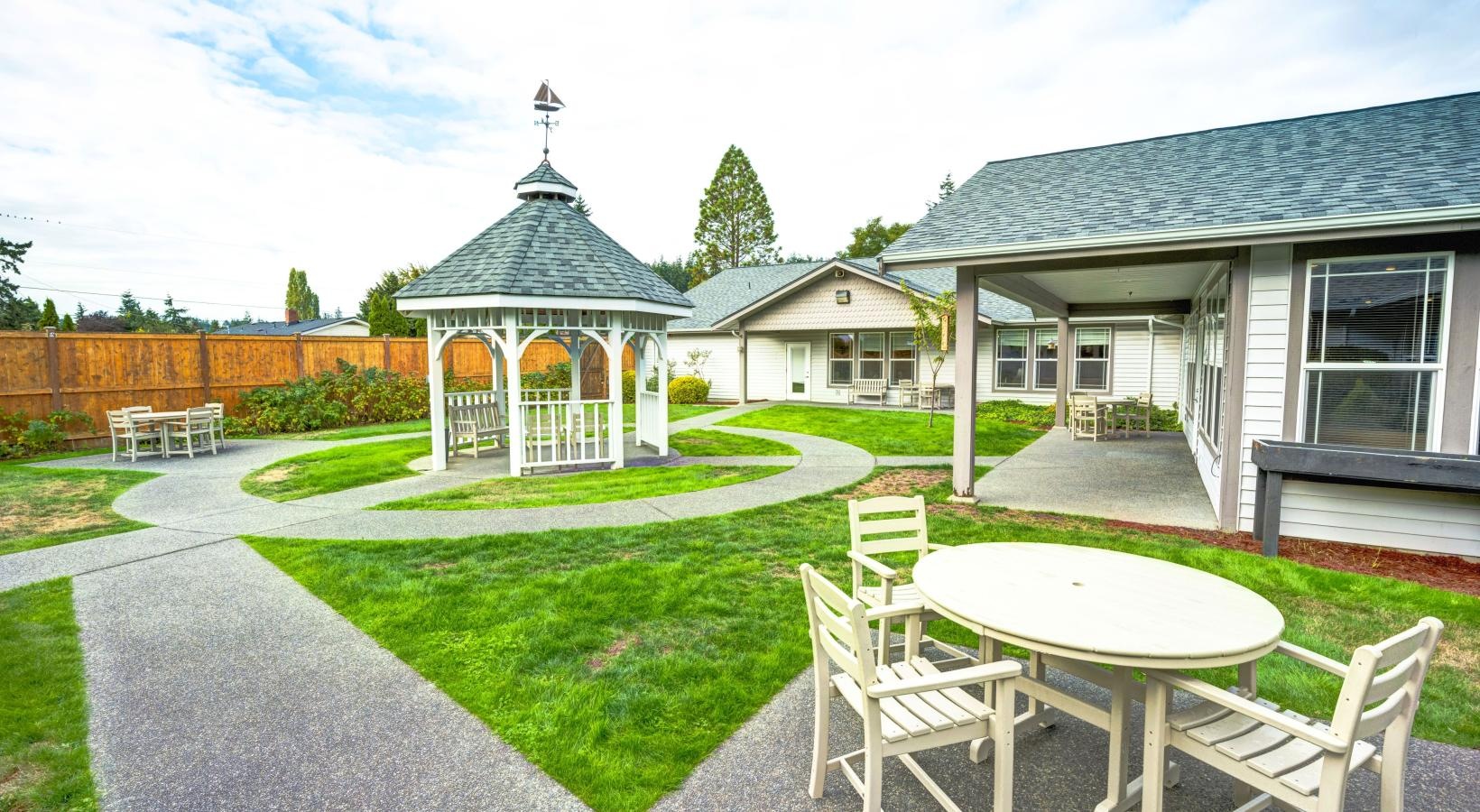 • a small gazebo in a yard
